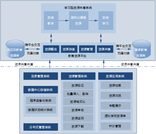 l 基于(区县-学校)两级管理、两级应用的设计理念,实现校级、区县级资源平台的两级级联和互通,为未来与市级、资源平台的整合对接提供多级扩展服务接口,实现多级教育机构的垂直管理以及同级教育单位的互联互通;
